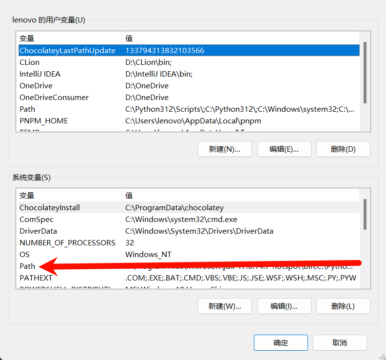 之后,win+i打开设置,搜索“高级系统设置”,依次点击“环境变量“,双击”path“
